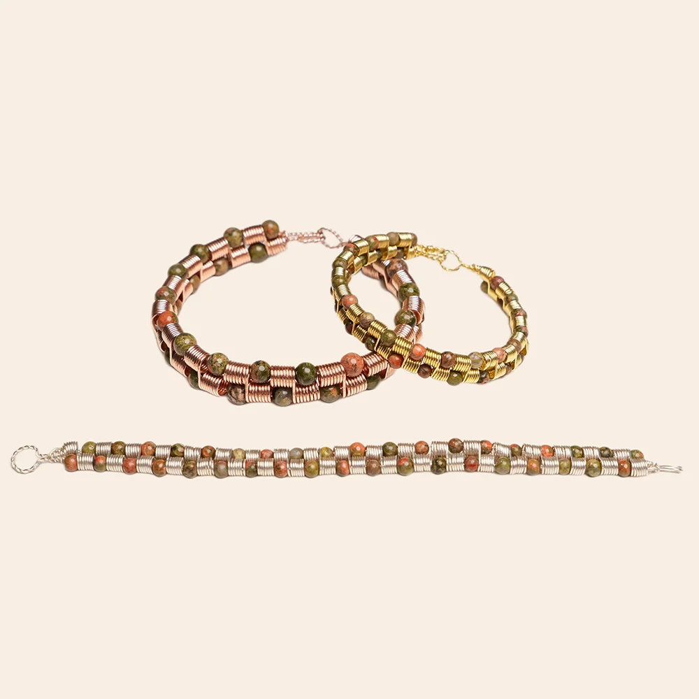 A gorgeous continuous Coil of wire surrounding your choice of either 4mm or 6mm Semi-Precious or Precious Gemstones.